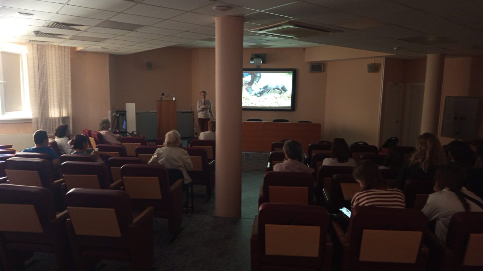 По окончании фильма с оставшимися в зале 15 слушателями встретилась к.б.н. И.А. Мухамедшина (ФИЦ ИЦиГ СО РАН). Ирина Андреевна объяснила некоторые моменты фильма, исходя из знания поведения диких лисиц, а также рассказала об эксперименте одомашнивания лисиц, в котором она принимает участие. Ее часть исследований реализовалась в кандидатской диссертации, защита прошла не так давно. Радует, что интересные факты услышали учащиеся естественно-научного класса лицея №130: единственные из школьников, оставшихся на лекцию. Спасибо их преподавателю М.А. Павловой.